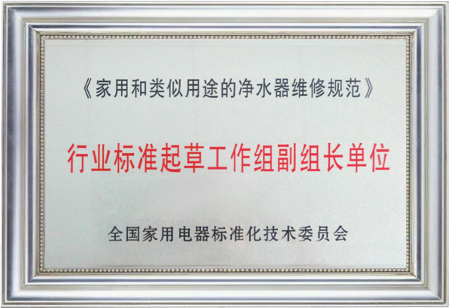 擔任凈水行業(yè)國家標準、行業(yè)標準起草工作組副組長單位