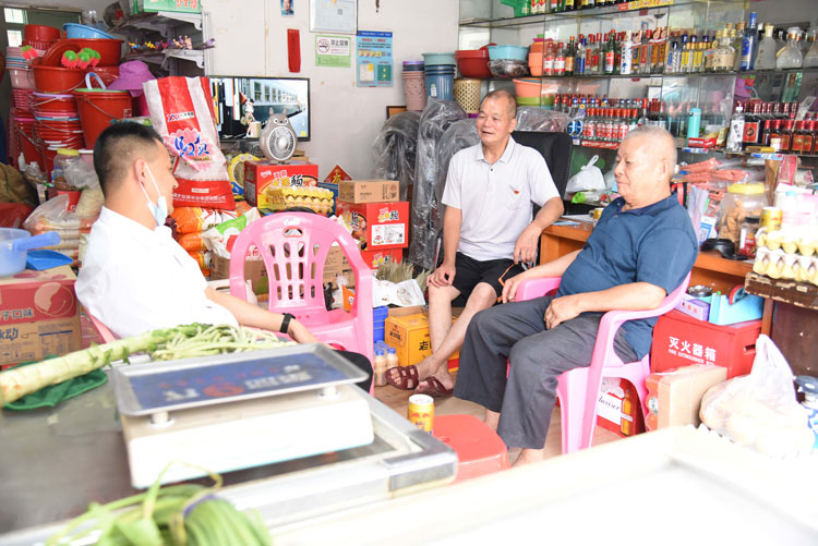 家樂(lè)士黨支部書(shū)記(左)與老黨員羅鑒同志(中)親切交流