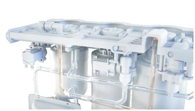 采用高強(qiáng)度的食品級(jí)PPO材料一體成型,耐高壓、防爆破,徹底杜絕管路與接頭的連接,最大限度減少漏水風(fēng)險(xiǎn),同時(shí)因?yàn)樗鏖L(zhǎng)度減短,更加節(jié)能。此外也杜絕了金屬掛板長(zhǎng)期使用后的生銹與變形。