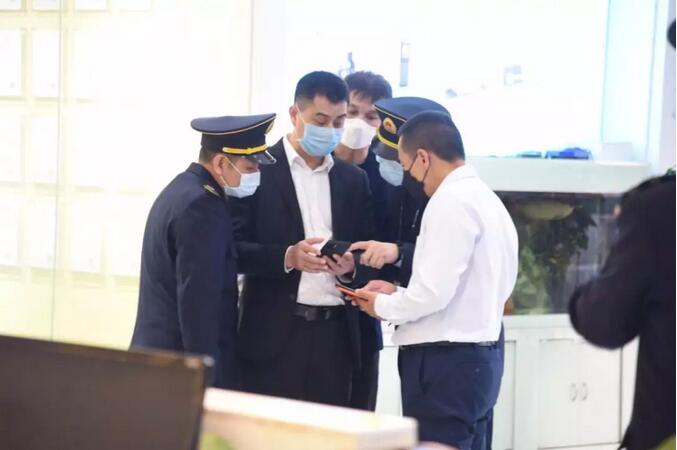 防控小組陪同衛(wèi)健委領導查看員工每日體溫檢測登記表