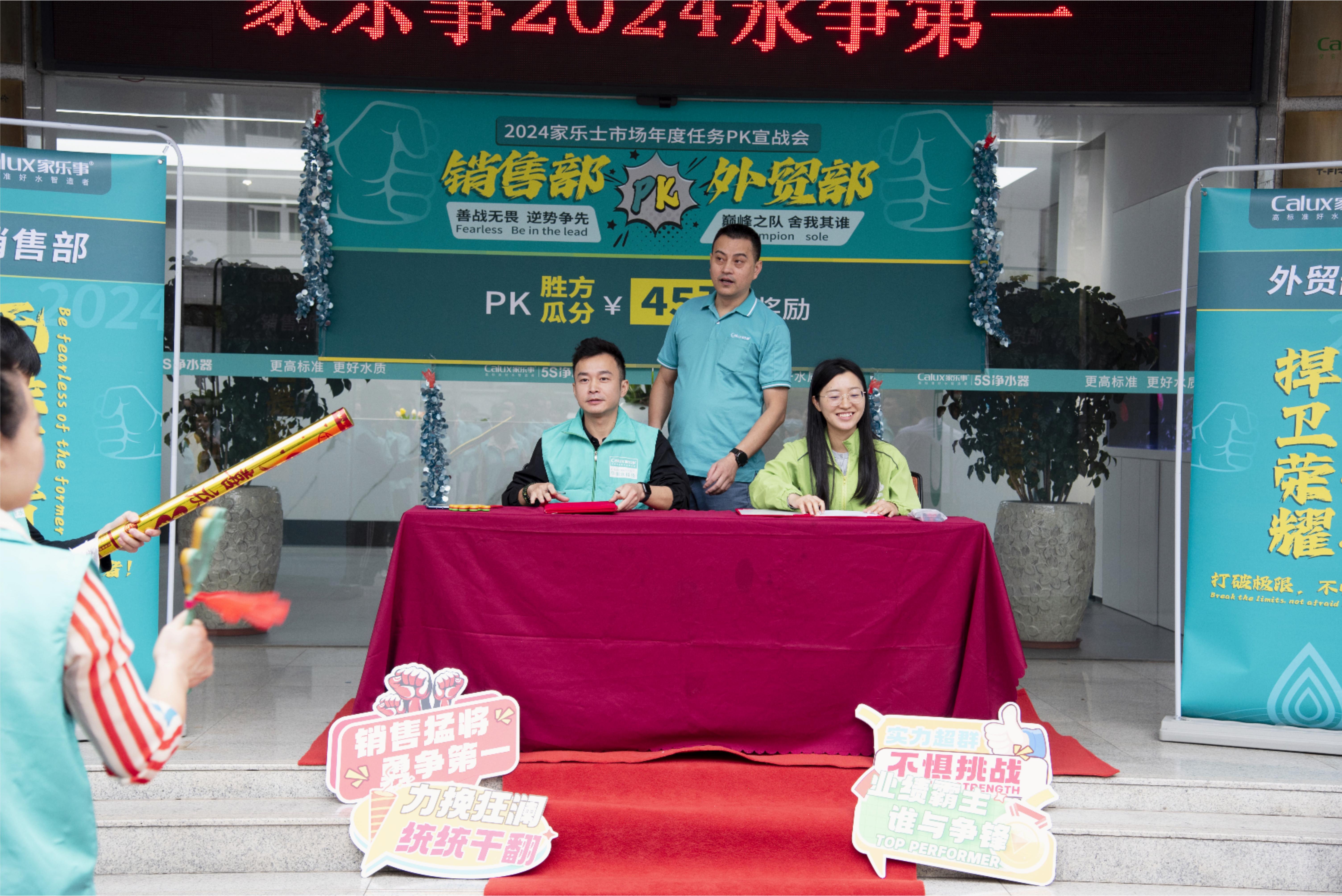 有貢獻奮斗才有獲得和成長!同時,為進一步激發(fā)員工責任和擔當,公司將在2024年拿出首筆豐厚PK激勵獎金,在當天大會現(xiàn)場進行了2024年家樂士“首場--市場年度任務挑戰(zhàn)PK”宣誓發(fā)布,為來年2024年積發(fā)力量預熱和信心籌謀。