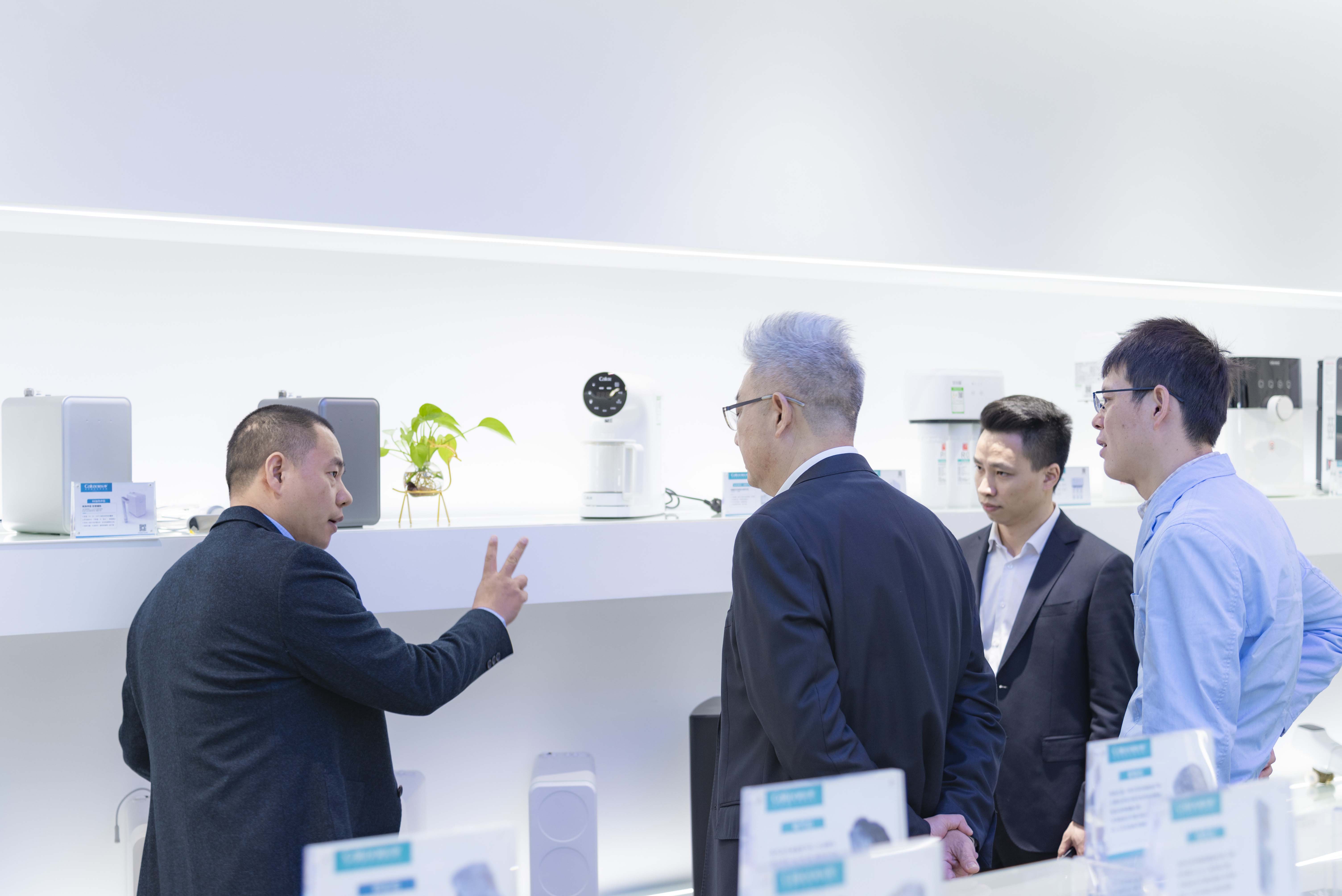 展廳內(nèi),家樂士總經(jīng)理劉小平向劉萬濤會(huì)長一行介紹了家樂士16年的創(chuàng)新發(fā)展歷程及主要業(yè)務(wù)方向;并講解了家用凈水機(jī)、美容機(jī)、氫水機(jī)、凈飲機(jī)、咖啡機(jī)等各類凈水產(chǎn)品,同時(shí)展示產(chǎn)品創(chuàng)新之處,包括先進(jìn)的過濾技術(shù)、節(jié)能環(huán)保設(shè)計(jì)、智能化控制系統(tǒng)等,強(qiáng)調(diào)產(chǎn)品個(gè)性化、多樣化發(fā)展,賦能多場景,以滿足消費(fèi)者對(duì)高質(zhì)量凈水的需求,并提升用戶的使用體驗(yàn)。