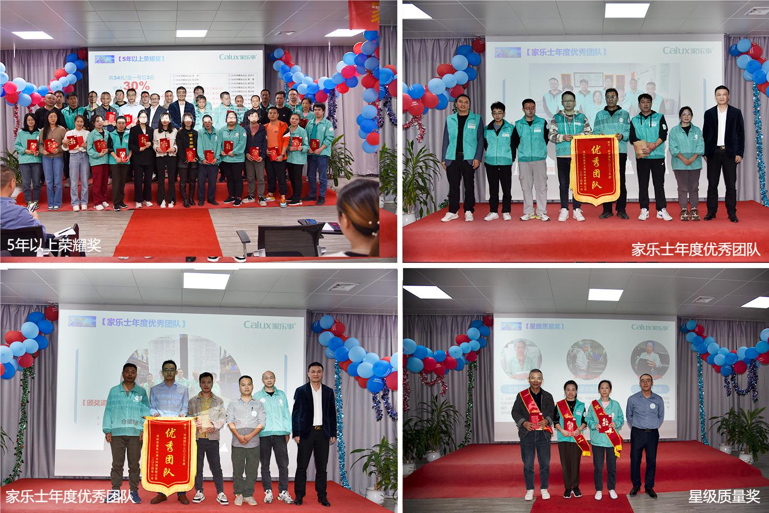 接著,公司對2023年度表現(xiàn)突出的員工和團隊進(jìn)行了隆重表彰。5年以上榮耀獎、年度標(biāo)桿獎、優(yōu)秀團隊獎、星級質(zhì)量獎、終身榮譽獎,這些在平凡崗位上做出不平凡成績的家樂士人,用實際行動詮釋了家樂士“嚴(yán)謹(jǐn)、高效、擔(dān)當(dāng)、奉獻(xiàn)”的價值觀,贏得了公司的贊許,是全體員工優(yōu)秀的榜樣。