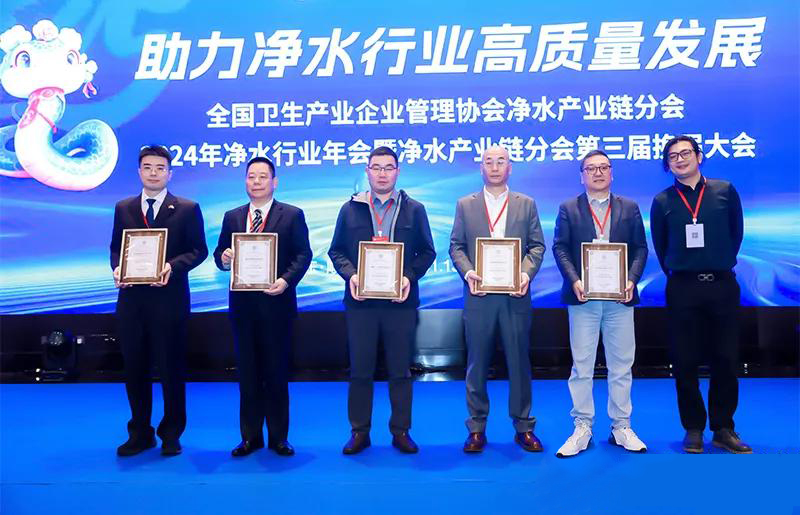 2025年1月13日,全國衛(wèi)生產(chǎn)業(yè)企業(yè)管理協(xié)會凈水產(chǎn)業(yè)鏈分會2024年年會暨換屆大會在廣州順德隆重舉行。大會匯聚了來自全國各地的理事、監(jiān)事、會員單位代表以及特邀嘉賓,本次年會以“助力凈水行業(yè)高質(zhì)量發(fā)展”為主題,深入討論并確定2025年的重點工作計劃,同時表彰在分會工作中表現(xiàn)卓越的企業(yè)會員、先進集體和先進個人,激勵全體分會企業(yè)向更高標(biāo)準(zhǔn)、更強實力、更深領(lǐng)域邁進,為產(chǎn)業(yè)的蓬勃發(fā)展再添新動力。